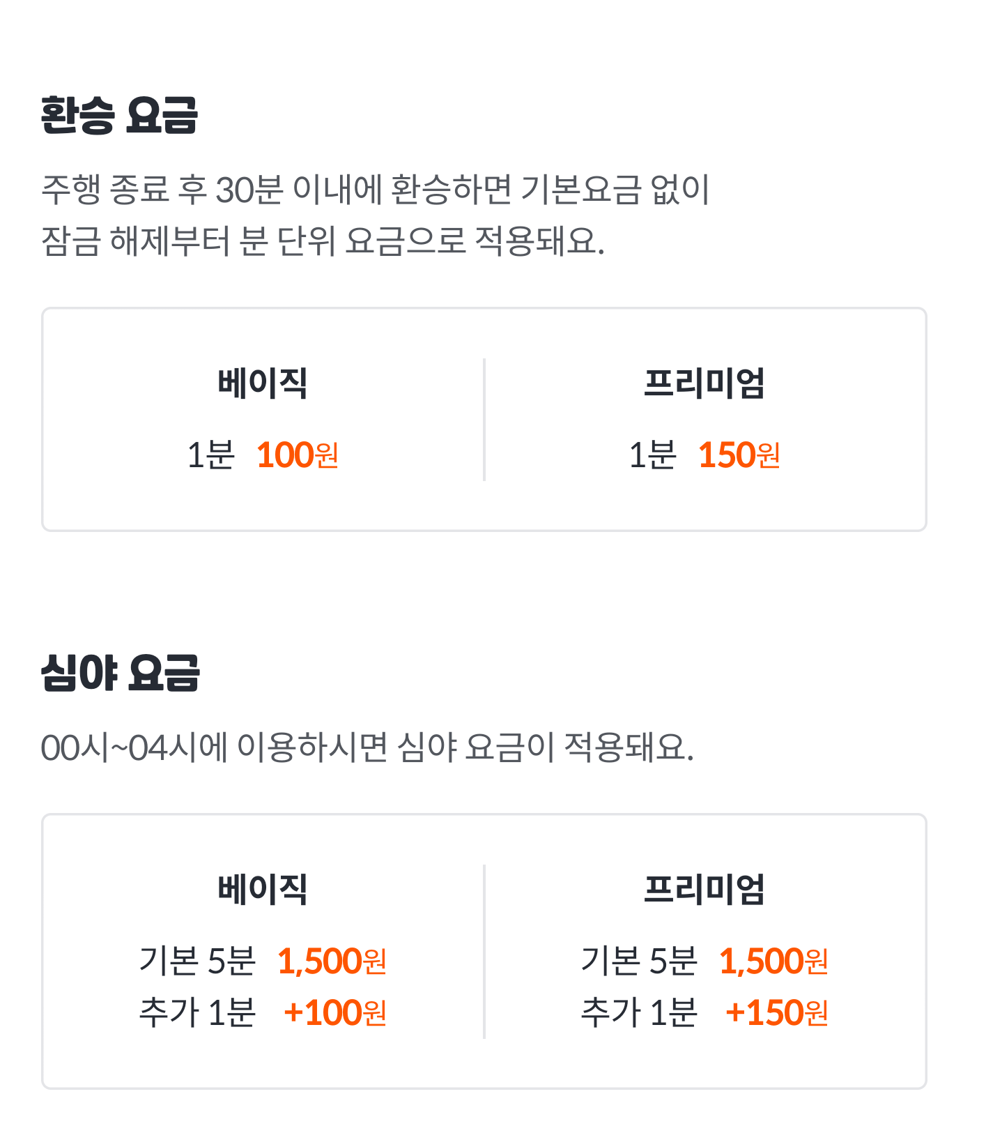 심야 요금(00시~04시)의 경우 기본요금이 베이지, 프리미엄 동일하게 1,500원입니다. 이후 추가요금은 동일합니다.