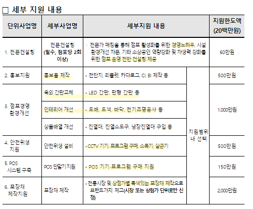- 지원 가능 물품 : 살균,소독기, 해충퇴치기, CCTV 및 POS기기 구매 등