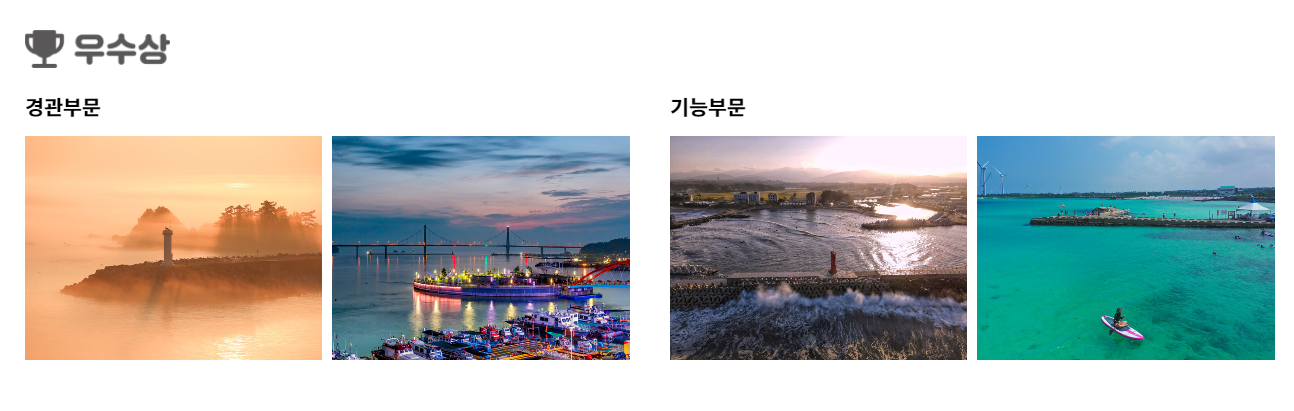 ◆ 경관부문 : 국가어항과 아름다운 자연의 조화를 담은 사진이면 가능합니다. 국가어항에서 볼 수 있는 일출이나 낙조같은 절경이나, 국가어항의 사계절을 담은 사진도 OK.