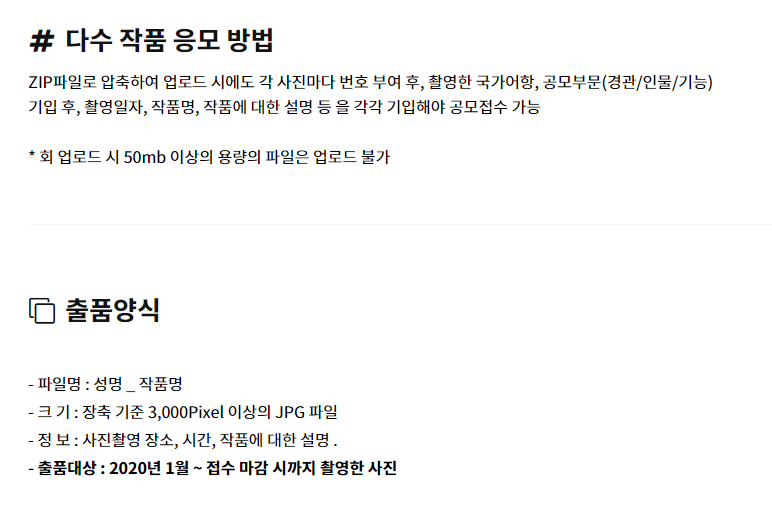- 출품대상 : 2020년 1월 ~ 접수 마감 시까지 촬영한 사진