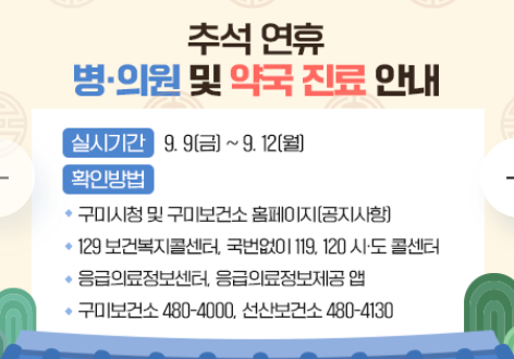 구미, 2022년 추석 연휴기간 병의원 및 약국 개원 현황 안내