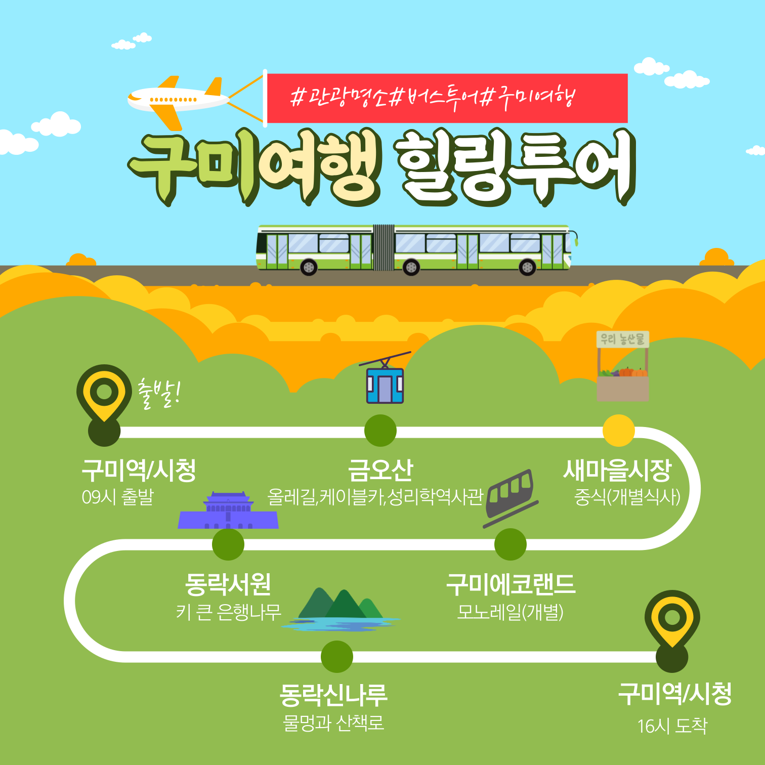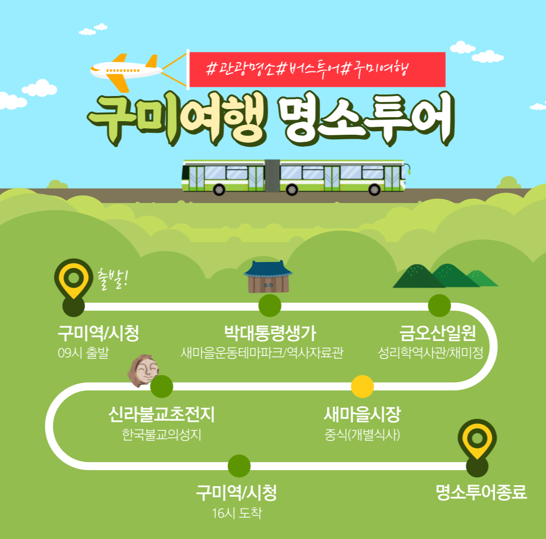 구미시에서 매년 운영하는 구미 관광시티투어를 올해에도 계속 하고 있습니다.