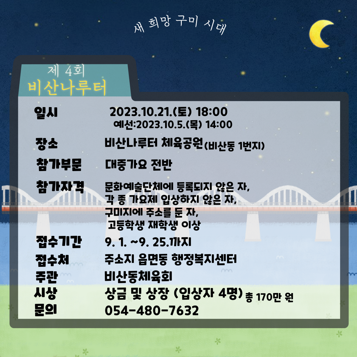 구미시, 제 4회 비산나루터 가요제 개최 안내